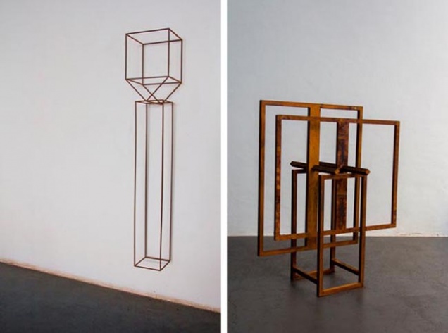 The exhibition displays 10 kinetic sculptures in corten steel and 34 photographs of the Timeline series, made between 2012 and 2013. The pieces are the result of the work produced by the artist in his studio, inspired on the Intrépida Trupe dance company.